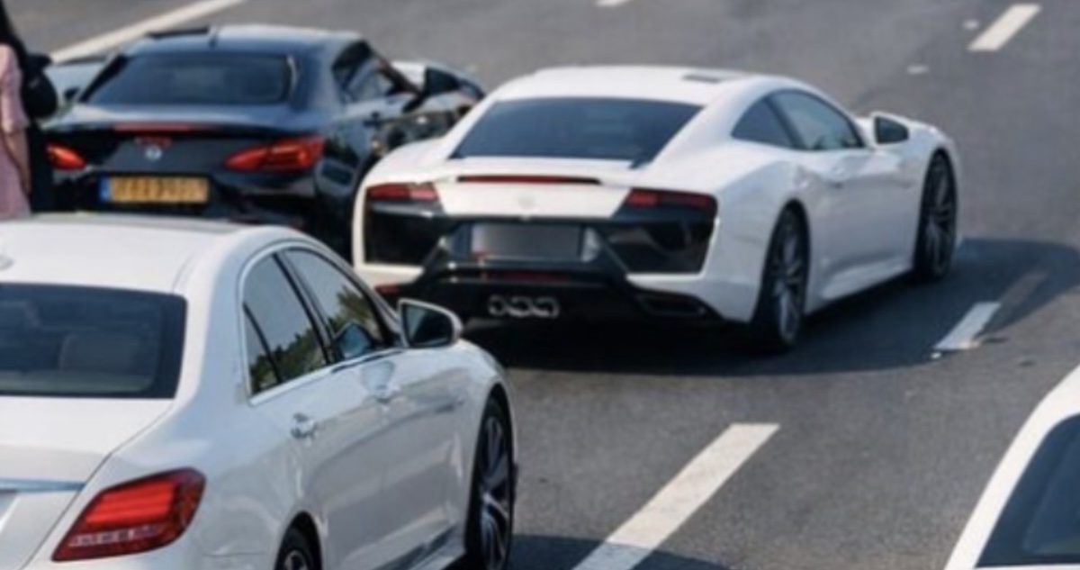 Wat een feestelijke trouwdag moest worden, eindigde in complete verkeerschaos. Een stoet met gehuurde luxeauto’s reed samen de snelweg op. Niet veel later ging het mis.